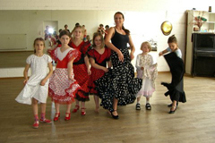 wie Rhythmusgefühl, Arm- Hand- und Hüftbewegungen, Basis-Fußtechnik und einfache Choreographien wie Sevillanas und Tangos Flamencos vermittelt.