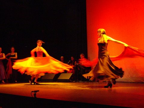schnellen Drehungen, den Bewegungen der Hände und Arme...und bunten Flamencoröcken.